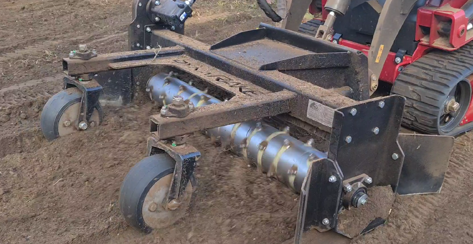 Utilisez le DynaRAKE pour évacuer les débris et mettre en forme votre terrain avant le passage du préparateur de sol ROTADAIRON.