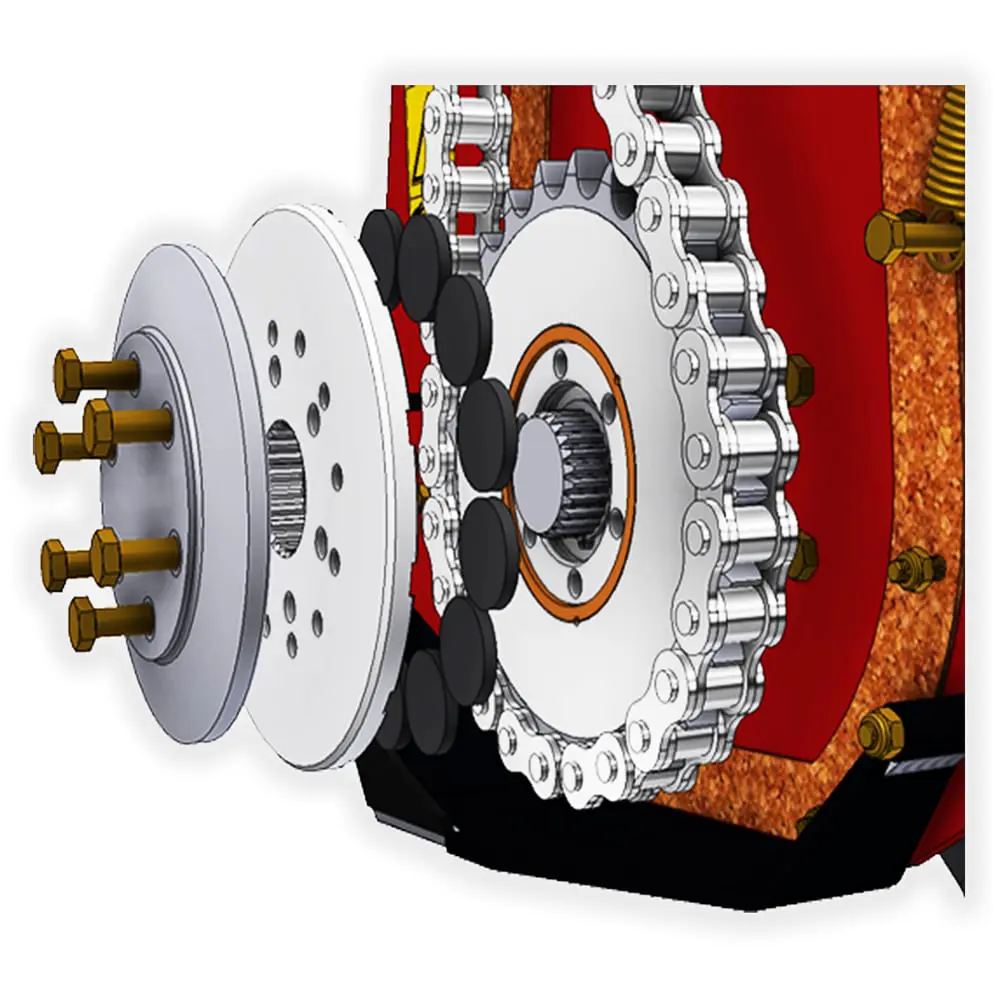 - Oil bath torque limiter at the end of the rotor