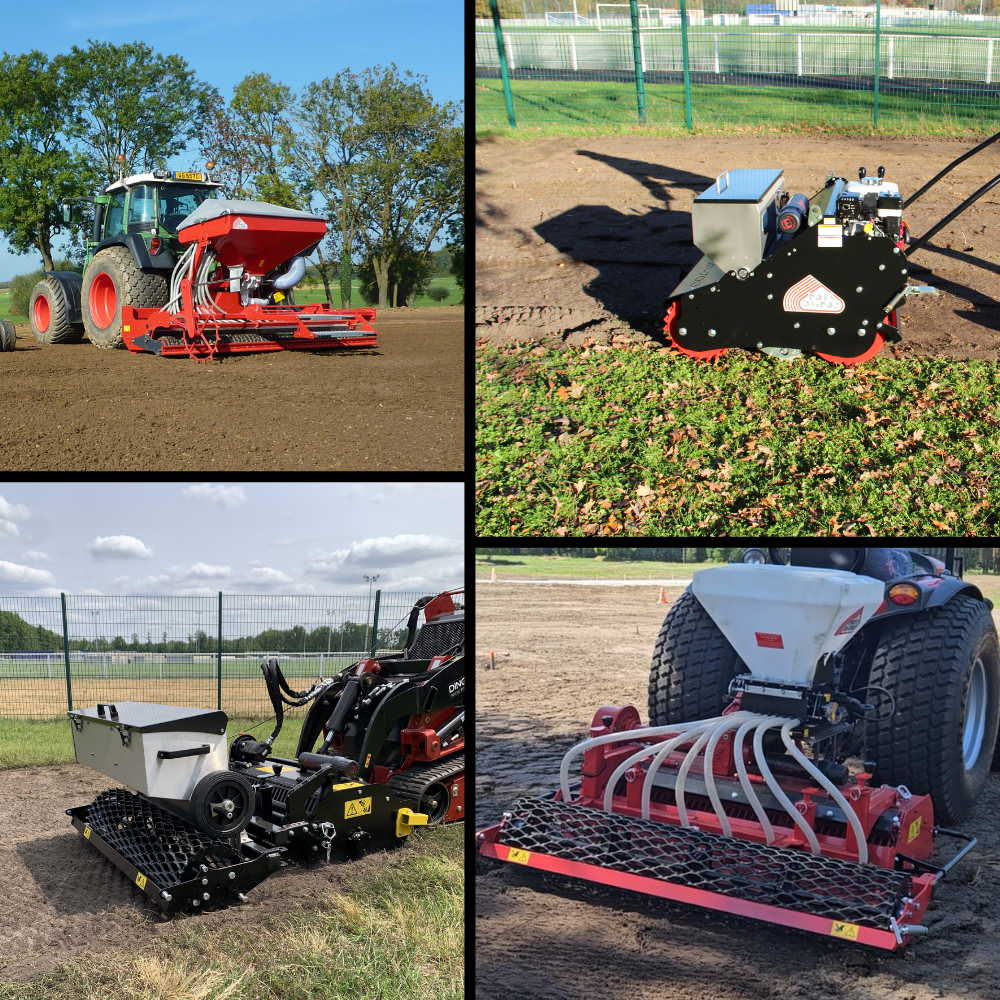 Nos machines (engazonneuses, semoirs …) permettent de réaliser des surfaces engazonnées en une seule passe pendant ou après le travail réalisé par le préparateur de sol (enfouisseur de pierres). Le système de réglage du débit des semences permet de gérer précisément les quantités mises en œuvre. Maitrisez vos chantiers, en évitant les surconsommations ! Evitez les reprises, par suite d’un semis en quantités insuffisantes !