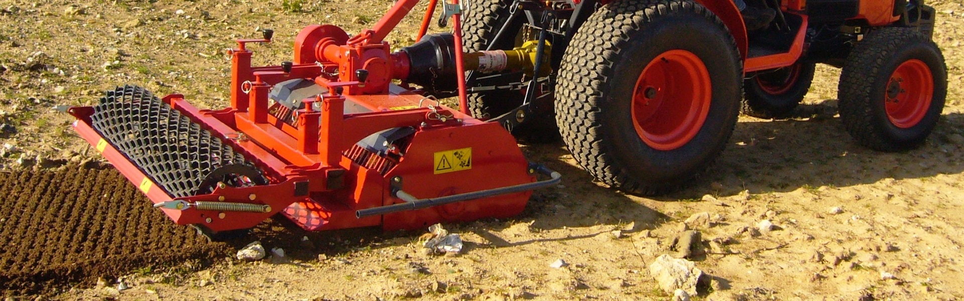 Nos préparateurs de sols (enfouisseurs de pierres) Rotadairon® ont été conçus pour vous offrir un rendu impeccable sur toute la largeur de travail, et ce dès la première passe. Nos spécialistes sont là pour vous conseiller sur le choix d’outil adapté à votre porteur actuel ou futur. En utilisant le principe de recouvrement, dû au déport de la machine, vous éviterez ainsi le marquage de votre porteur entre deux passes et serez fier de votre réalisation ! Vous pourrez également choisir en option sur la plupart de nos équipements un semoir adapté à nos préparateurs de sols et réaliserez alors, en une seule passe également votre engazonnement.
