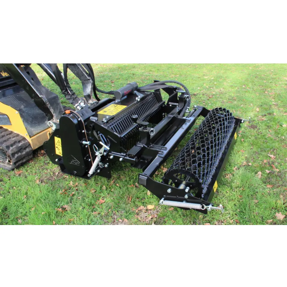 Vous souhaitez donner un nouveau souffle à votre terrain ? Optez pour l’un de nos préparateurs de sol, le Rotadairon® STH 36. Cet enfouisseur de pierre dispose d’un attelage qui lui permet de s’adapter aux Skid Steer.